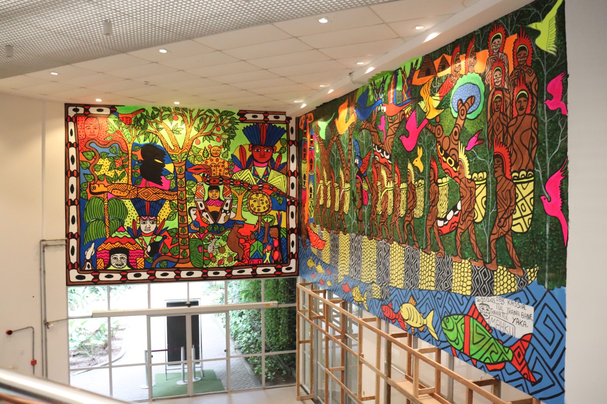 Ao traduzir os mitos e cantos do povo Huni Kuin, o mural convida o público a adentrar a cosmovisão amazônica, simbolizando a profunda relação entre cultura, comunidade e meio ambiente. A arte — medindo 58,9 metros quadrados — marca a presença dos povos originários da Amazônia no Museu Goeldi, que, em um gesto simbólico, declarou-se “território indígena” em 2023, reforçando sua contribuição para as discussões culturais e ambientais da região.